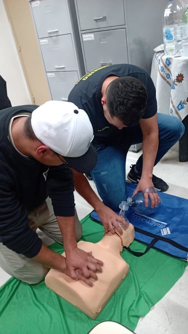 Prática das manobras de RCP, controle de sangramentos e outros procedimentos.
